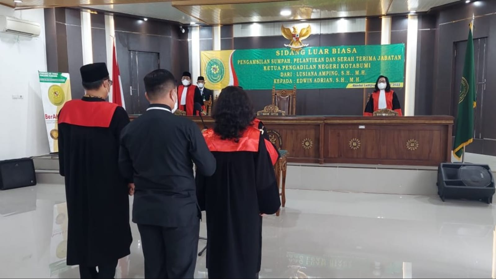Mahkamah – Mukhlisin Fardi hadiri pelantikan Ketua PN Kotabumi, Edwin Adrian di kantor PT Tanjungkarang pada 24 Juni 2022.